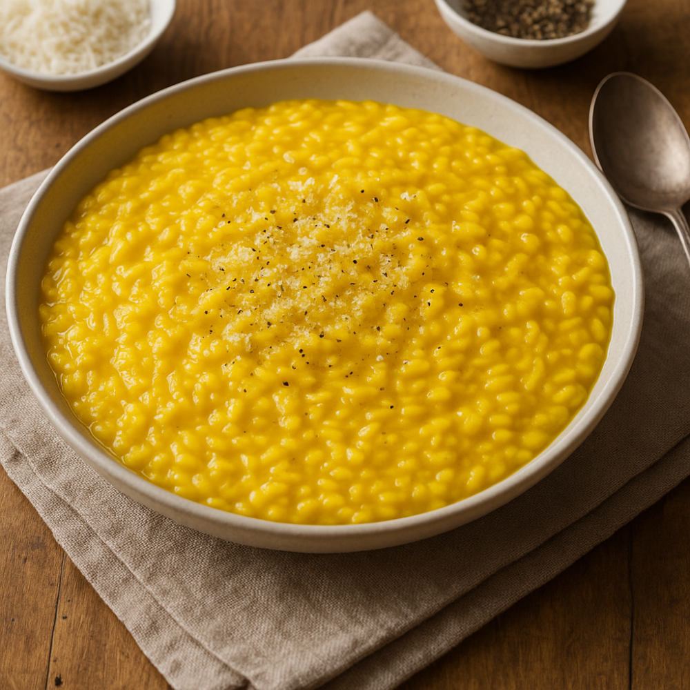 Le risotto alla milanese est né dans la ville de Milan, capitale économique et culturelle de la Lombardie. Sa couleur jaune intense vient de l’usage du safr…